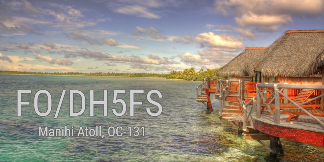 Fred, DH5FS (recently active as E6FS from Niue) is now moving onto French Polynesia – Manihi Atoll, OC-131 Tuamoto to be precise. Look for FO/DH5FS during October 4-11, 2024 mainly on 20-10m; CW & FT8 using the same set up as on Niue. QSL via H/c.