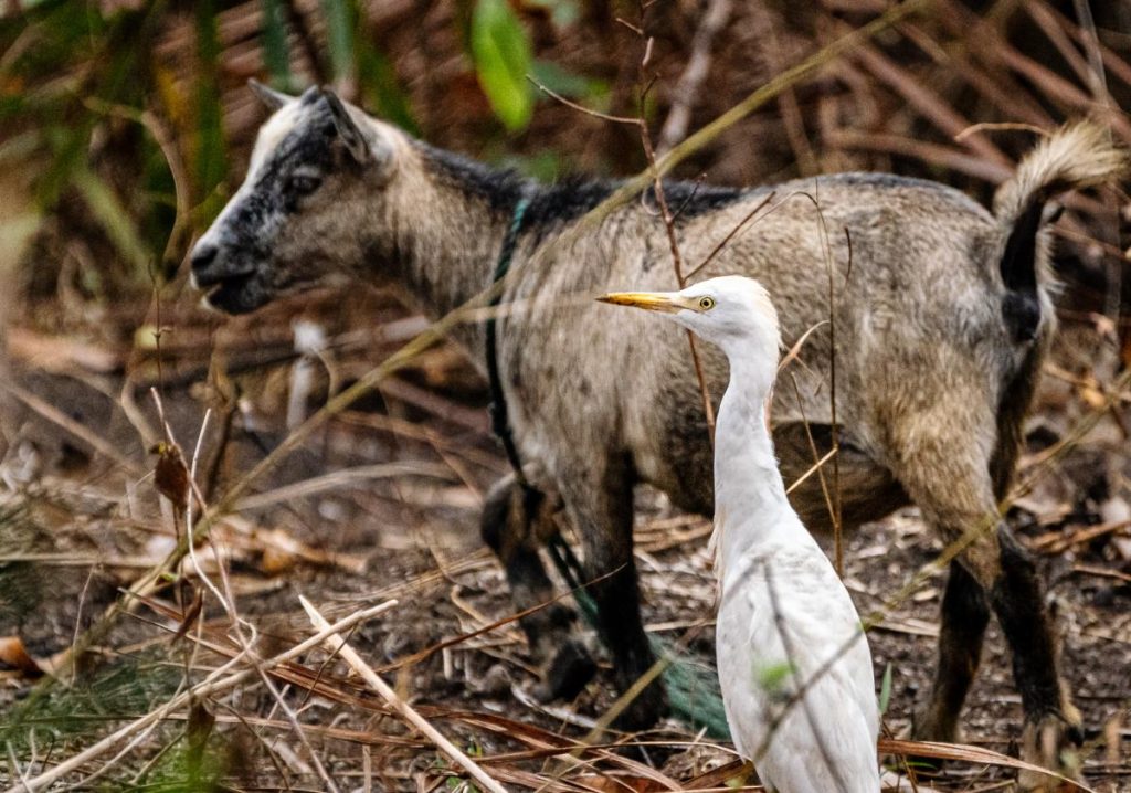 5N9DTG NigeriaGarceta bueyera (Bubulcus ibis) y una cabra enana de África occidental. Según el folclore nigeriano, las garcetas son los fantasmas del ganado muerto que vienen a quitarle las garrapatas a los vivos. Por eso, el ganado parece no verlas. Una explicación más racional es que las garcetas siguen al ganado para darse un festín con una multitud de insectos que levantan las pezuñas del ganado: saltamontes, grillos, polillas y arañas.