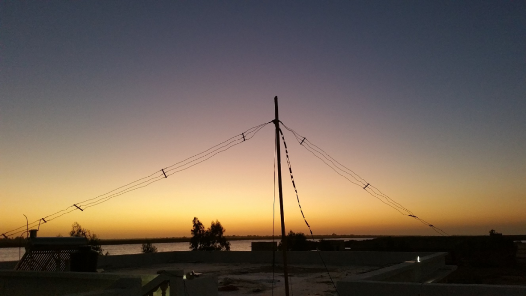 Alpha Delta DX – Antena dipolo EE al atardecer en la isla Marjoj