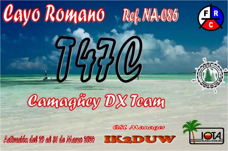 El Grupo Camagüey DX (Camagüey DX Team) estará operando las estaciones T47C y CO9JAB en una expedición a Cayo Romano, donde se realizarán dos actividades simultáneas: una activación IOTA con la referencia NA-086 correspondiente a esta zona geográfica y una activación POTA con referencia CU-0291 correspondiente a este espacio protegido.
